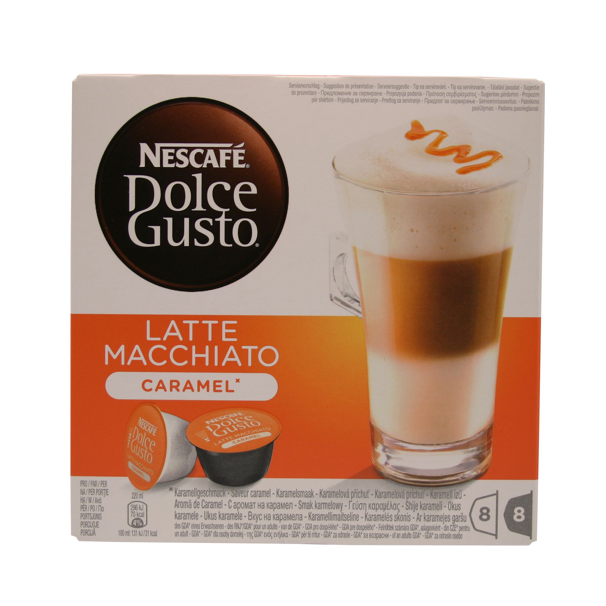 Schreibe die erste Bewertung für „Nescafe©: Dolce Gusto Latte Macchiato Caramel – Packung mit 16 Kapseln für 8 Portionen“ Antwort abbrechen